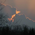 First, a curious but striking shot of the sky at sunset.  There follow a Junco with a singular white tail feather, a very scruffy male Goldfinch, and a Red-breasted Nuthatch doing what it does best – hang around upside down.