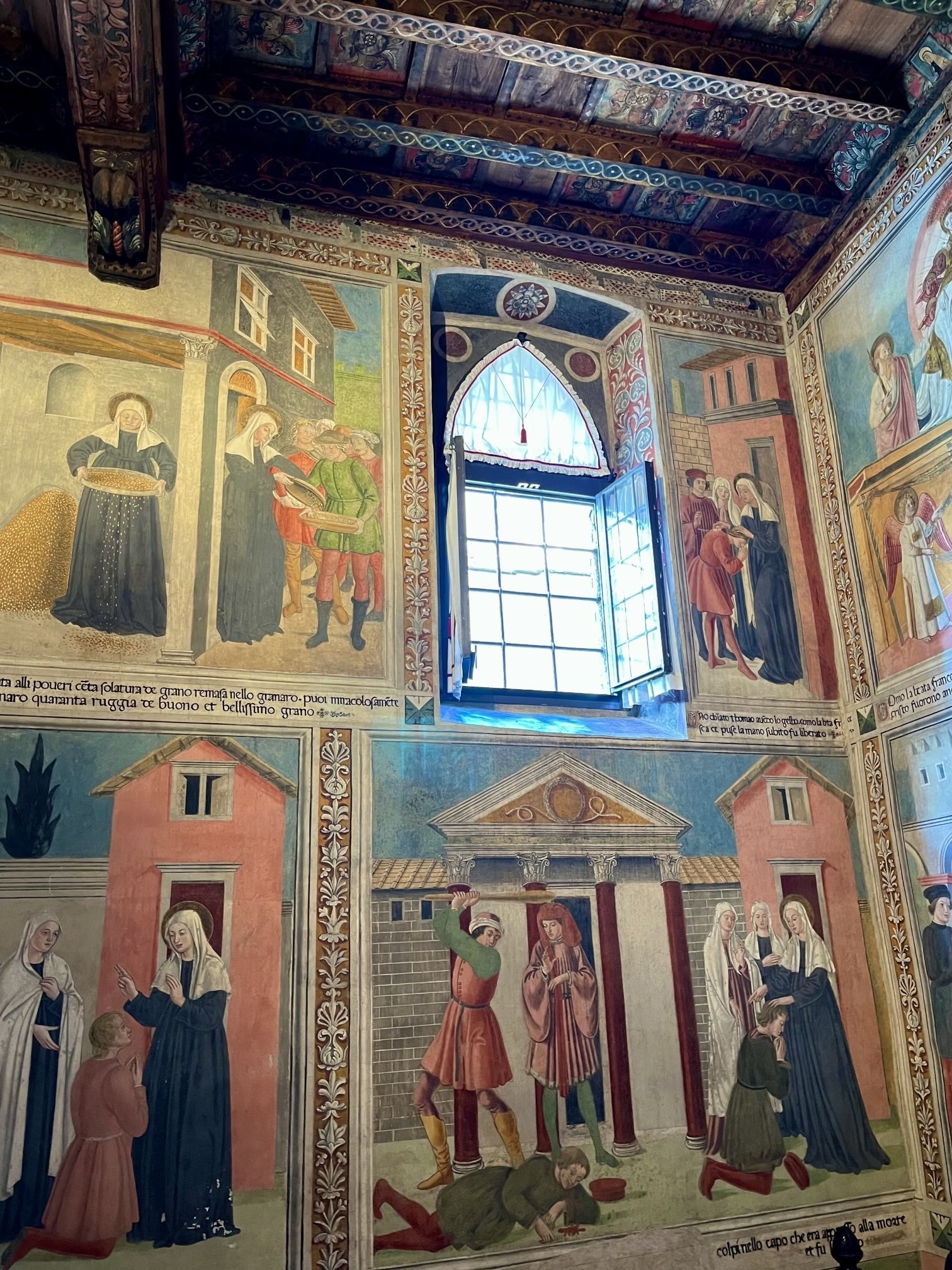 Once a year, on the Feast of St. Frances of Rome, the convent she founded in the 15th c. is opened to the public. These rooms are painted with scenes from the life of the saint, so beloved by the Romans.